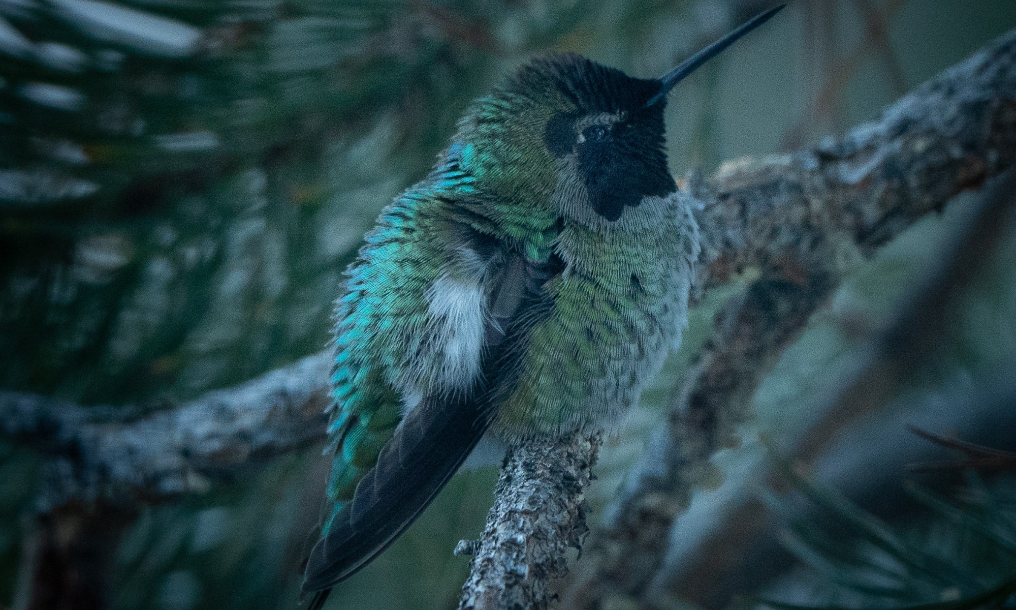 My little hummingbird is still a regular at my feeders. When I got up this morning, the feeders were frozen. I thawed them out and as I was putting it back outside, I heard the swoosh of the hummingbird behind me. He was at the feeder less than 10 seconds after I put his fender …