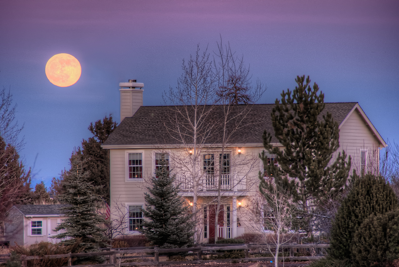 I wanted desperately to get a photo of the full moon this month.  My first thought was to get a photo at Smith Rock with the full moon, but the positioning was completely wrong.  I ended up taking this photo from my driveway.  It’s a photo of one of my neighbor’s home with the moon rising right next to it. It was an exquisite moon.