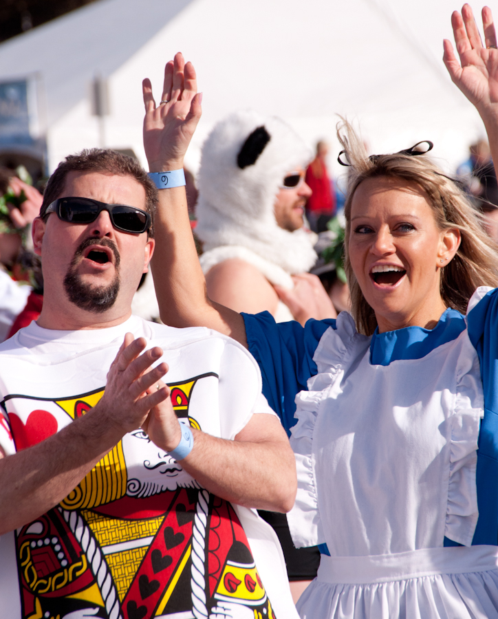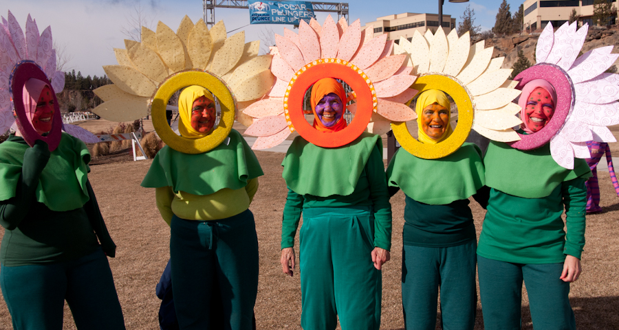 Today was the annual Polar Plunge here, which is a fundraiser for Special Olympics.  I thought it might be kind of fun to go down and watch these people run into the freezing cold Deschutes River, many of them in costumes.  The skies were clear but it was just 28 degrees F. with a wind chill that felt to me like 5 degrees.  The water temperature was about 39 degrees.  But everyone seemed to be having a great time despite running into the icy water.  I don’t know any of the people in these photos, but they were kind enough to let me take their pictures.  If anyone in Bend knows their identity, feel free to forward this to them.