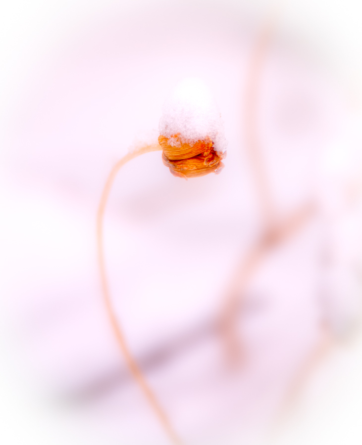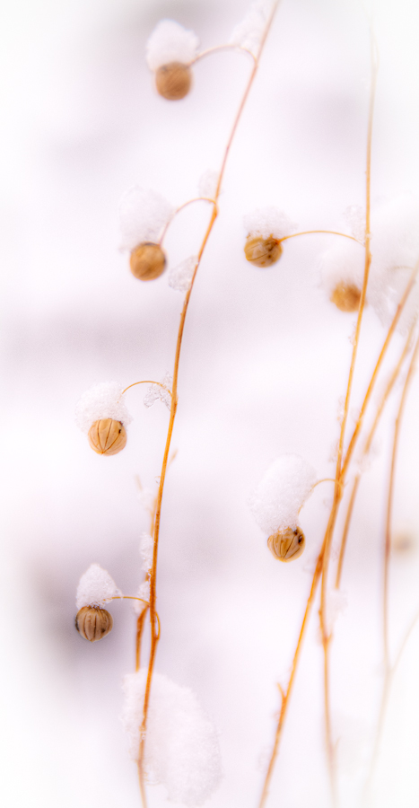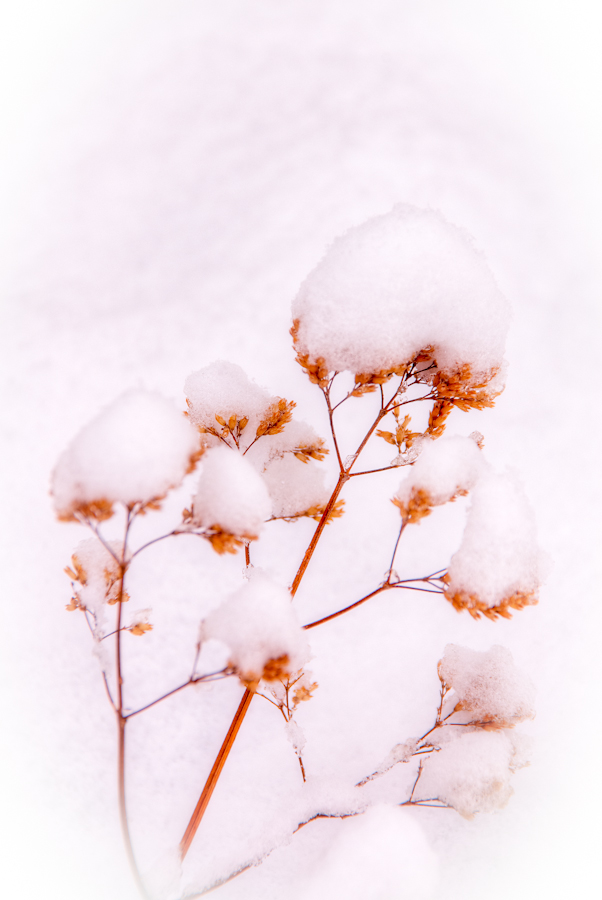 I wanted to get out early to take some photos of the snow on the plants outside before the wind picks up and blows it all away.  I put a vignette around all of the photos to give them a softer look.