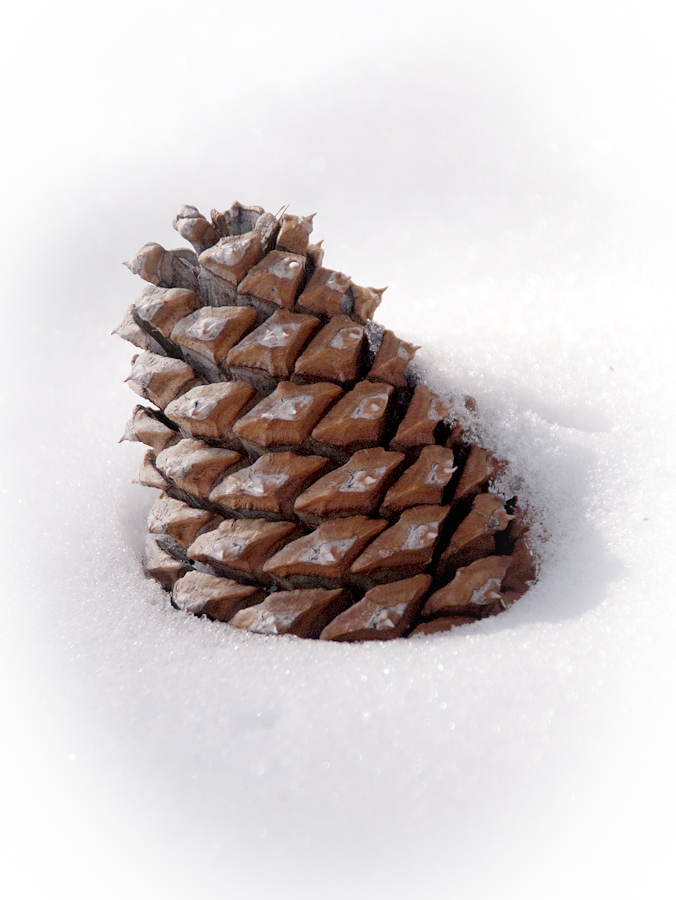 I’m with the pine cone, too. It’s just so snuggly nestled there in the snow. (although the planters and their shadow circles are excellent)