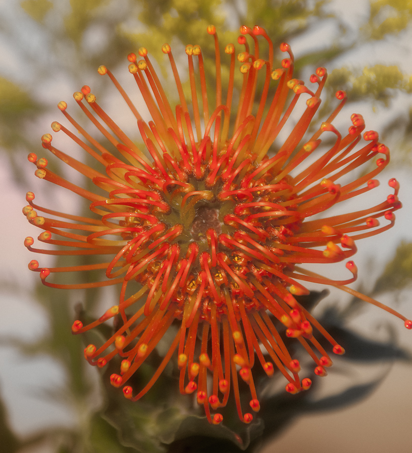 The Protea flower originated in South Africa. Ancestors of the Protea plant date back to 100 million years ago and are considered one of the oldest family of plant on earth. The flower is named after the Greek God, Proteus, who had the ability to change shape and form at his will.