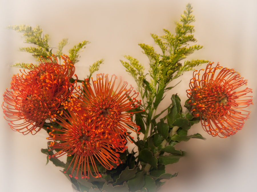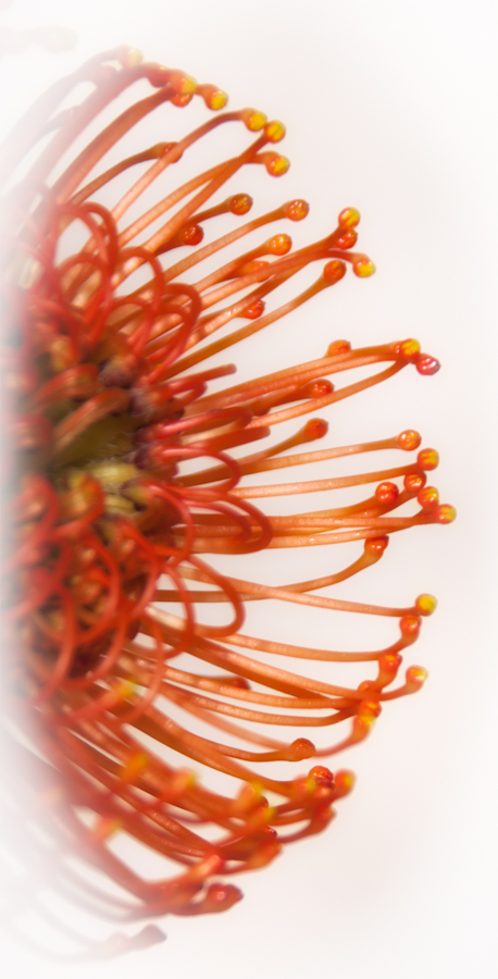 While at the grocery store today, I spotted some Protea flowers and I just had to pick them up. I haven’t seen a Protea since I left Hawaii 13 years ago. There are many different types of protea flowers – these are Red Pincushion Protea.