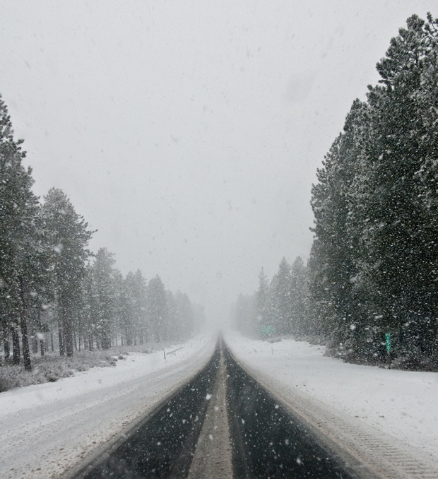 These photos were taken from the car. Because we were in a moving vehicle, I had to bring the shutter speed up so everything wouldn’t be blurred. Driving back home, the snow had stopped falling, but it was still pretty wet.