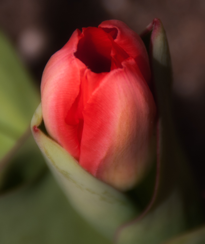 I know it’s spring when flower actually come out of the ground.  I noticed these tulips getting ready to bloom at work last week and I was hoping they would bloom today. . . and they did.