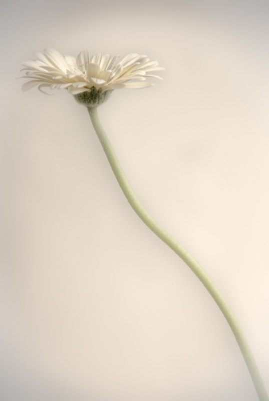 I wanted to try taking photos of white flowers against a white background and see what I could come up with.  I picked up these white gerbera daisies on my way home from work and set them up outside.