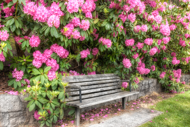1. Absolut stunning … love the old bench and the massive rhododendron, what a fantastic photo. Amazed that the roses are blooming already, maybe the climate is a bit warmer over in Oregon.