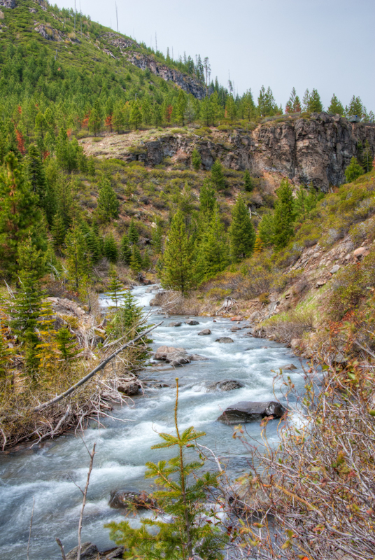 After a week of taking macro shots, I put my regular Tamron 18-250 lens on my camera and took a drive up to Tumalo Falls. This falls in at the end of a road that is closed in the winter months. You can always walk, snowshoe or ski to the falls but the gate is about 2.5 miles from the falls. Not all that far unless you’re carrying a heavy tripod and camera bag on your back.