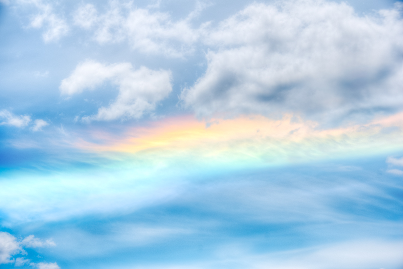 It isn’t a rainbow in the traditional sense—it is caused by light passing through wispy, high-altitude cirrus clouds. The sight occurs only when the sun is very high in the sky (more than 58° above the horizon). The hexagonal ice crystals that make up cirrus clouds must be shaped like thick plates with their faces parallel to the ground.
