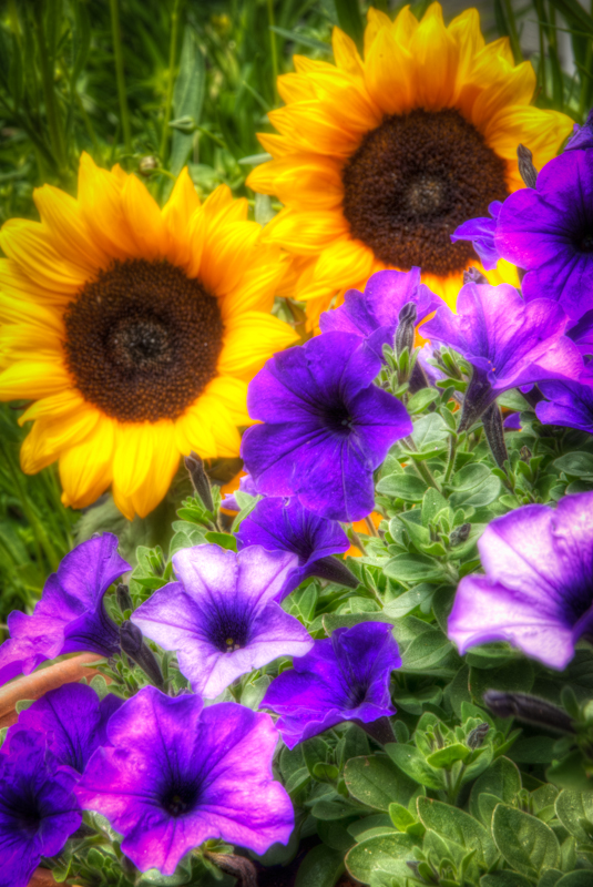 My favorite color combination has always been purple and yellow. I have some purple petunias that are blooming now and I picked up a few sunflowers to go along with them. There’s something about this combination that just makes me happy.