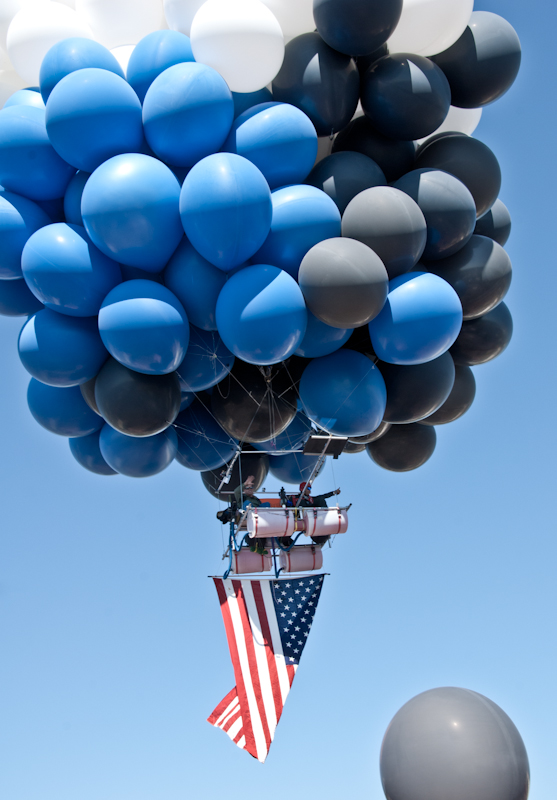 I didn’t stay around for the running portion because I wanted to go to see Kent Couch take off in his lawn chair balloons. You may have read about him in the past – he takes off in a lawn chair tethered to several hundred helium balloons. His contraption has become much more sophisticated since he first took off in 2007. This year he had a another passenger with him – Fareed Lafta, an Iraqi adventurist. You can read more about it here. They’re hoping to set a distance record this year, but as I’m writing this the thunderclouds are starting to form. Hopefully they won’t be caught in a thunderstorm.