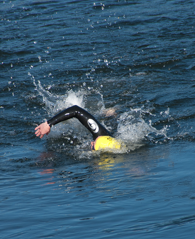 The Deschutes River is cold, so I have to commend anyone who will go into the cold water early in the morning to swim. Most people were wearing wetsuits but there were a few diehards that didn’t.