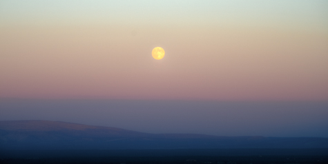 I almost missed the full moon tonight.  The two moon charts I refer to said the moon would rise at 8:28 or 8:30.  So as I’m driving up Pilot Butte at 8:20, I see the moon has already risen and is above the horizon.  I drove as quickly as I could on the narrow, busy road and arrived in time to get a few shots before it got too high.