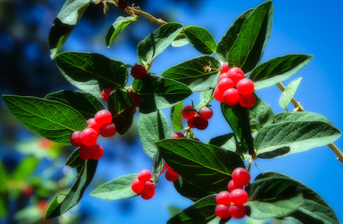 The start of another work week and more time crunch. I only had a brief amount of spare time today to get to photograph. I saw this tree with fresh berries and liked the contrast of colors. It was such a gorgeous day and the sky was so blue.