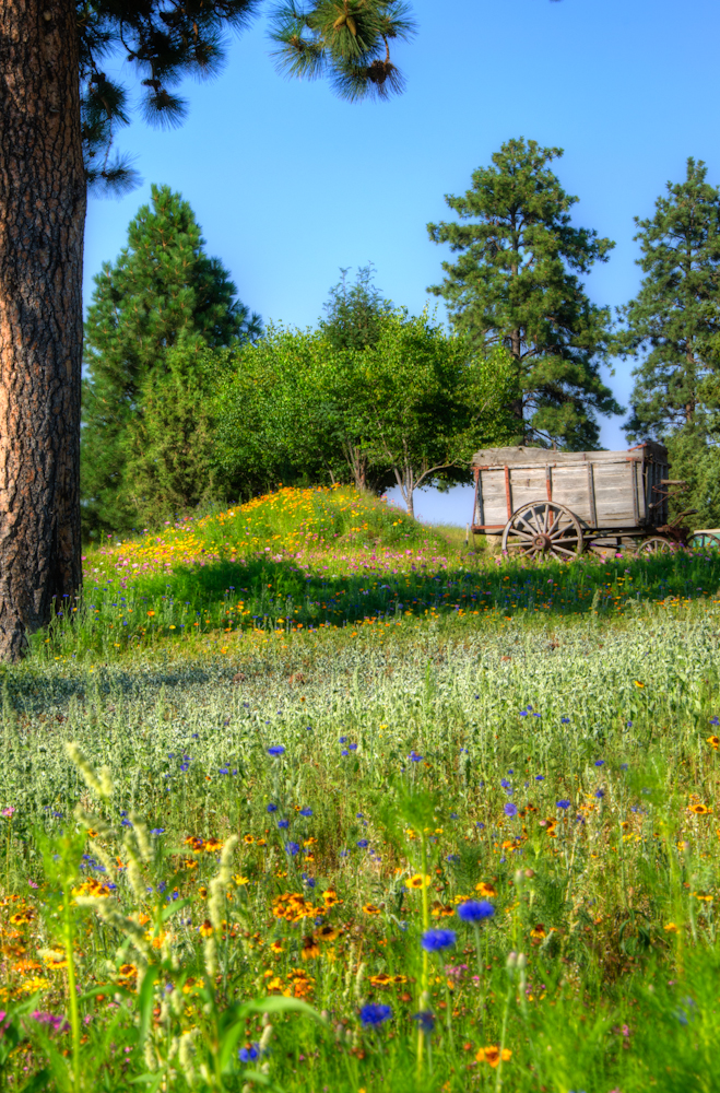 So this afternoon I went down to the park with the old wagon trains.  They recently planted fields of wildflowers around the wagons and I’ve been waiting for them to bloom. Some of them were in bloom today.