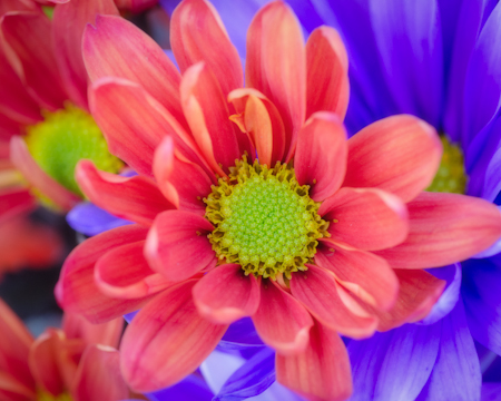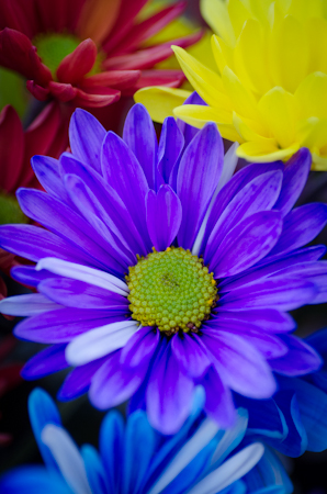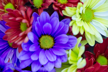 When I saw these colored daisies at the store this week (and they were on sale), I had to get them and photograph them.  The all look so happy together.
