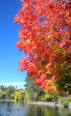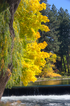I spent my lunch hour at Pioneer Park, a small park near my office.  The trees at the edge of the park along the Deschutes River were in full color. I walked the trail along the river for as far as I could go.  The sound of the rushing water and the towering ponderosa pine trees made for a very meditative walk.