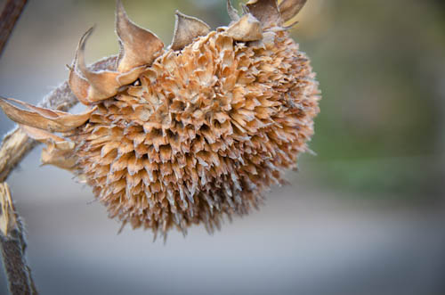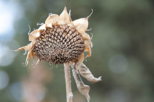 I came across some sunflowers that are way past their prime. The are such a happy flower when they are blooming in the summer but when autumn arrives and they lose their petals, their heads droop and they look so sad.