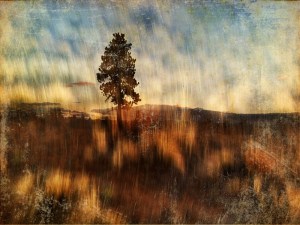 On my way home from work today, there was a gorgeous band of clouds on the horizon.  The sun was glowing on the top of the clouds.  I tried to get home as fast as I could so I could photograph it, but because the sun is setting so early these days, I was a little late.  I tried to take a photo with my iPhone using ProHDR app but it was so windy and I couldn’t stand still enough.  But I kind of liked the effect because the tree was sharp.  I added a little grunge and this is what I came up with.