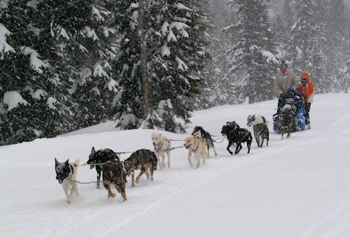 Several years ago, my husband surprised me on our anniversary with a ride with a team of racing sled dogs.  It was one of the most exhilarating things I’ve done.  It was snowing heavily and the trees were thick with snow.