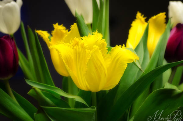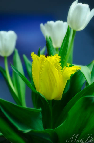 My pick must be the yellow tulip with the purple in the background. Wonderful … love the blur of the background.