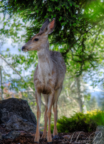 Maralee_Park_130526_48091-Edit Maralee_Park_130525_48004-EditThey left early in the afternoon so I took that opportunity to mow the lawn.  I was nearing the end of my hour-long task when I came around the corner and stood face to face with the four deer.  I shut down the mower, and walked slowly around the back of the house.  I didn’t want to freak them out.