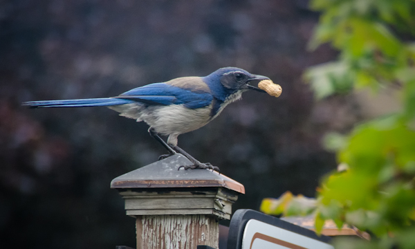 Maralee_Park_130621_49744-EditI put some peanuts out for the little squirrel so he wouldn’t have to eat all my bird food.  Well, I guess what goes around comes around because now it’s the bird eating the squirrel food.