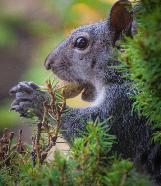 He’s pretty skittish so doesn’t stick around in one place very long. I entice him to a bush by my window by putting peanuts on the bush, but he usually grabs and runs.