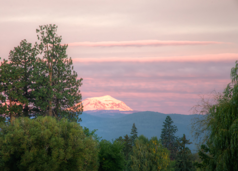 The sun hadn’t quite risen so there was a beautiful alpenglow on the mountains.