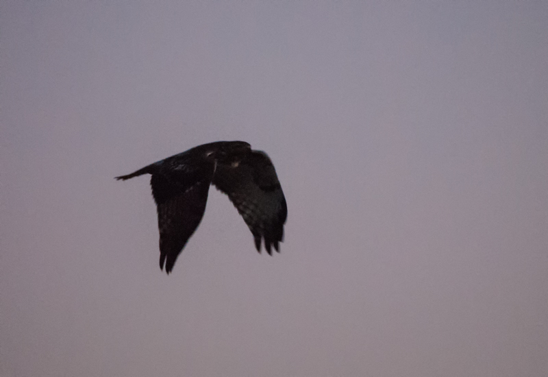 But he was still sitting there on my way home, and although there wasn’t much light, I stopped. I had to crank my ISO up as high as I could to get any photo at all. I got out of my car to get as close as I could.