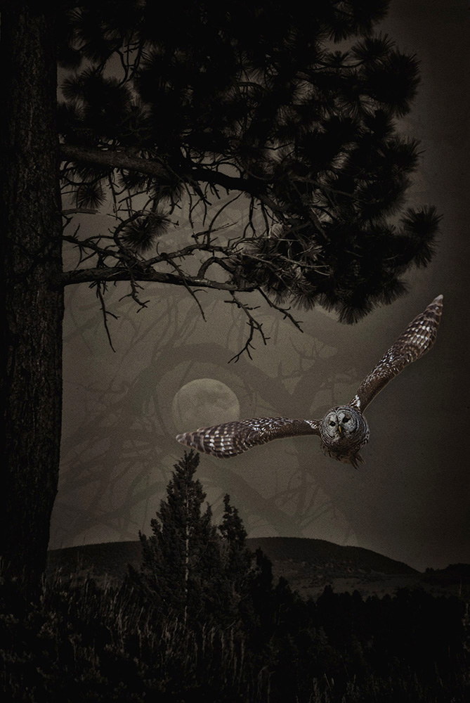 I’ve seen some beautiful photo composites and want to start doing some composites. This photo is a composite of three different photos I’ve taken in the past. I love owls and wanted to give this composite a dark, eerie feel.