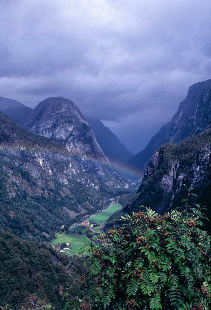 This photo was taken about 15 years ago on a visit to Norway. We were on top of a mountain looking down into the valley and the rainbow appeared for about 15 seconds.