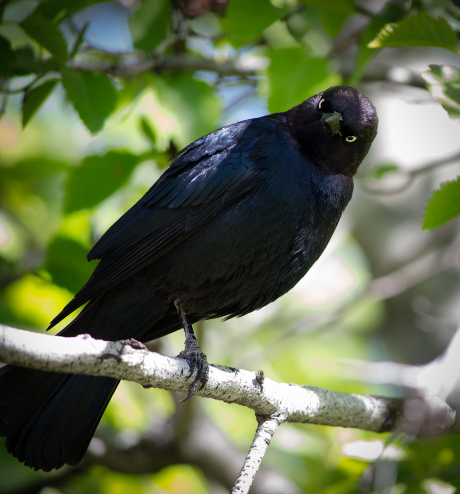 If my research is correct, this is a Brewer’s Blackbird. Maralee_Park_140512_64082-Edit I was taking a walk at the park yesterday and there were several of these in a bush as I was walking by.  Maralee_Park_140512_64066-EditThis one was kind enough to stay long enough for me to get some shots of is.