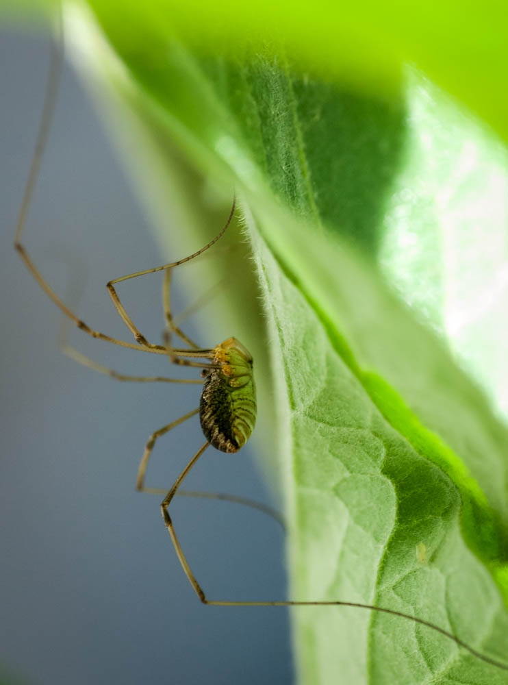 The harvester is not a spider . . . . but I suppose it’s close enough. It is an arachnid, but different order from spiders.
