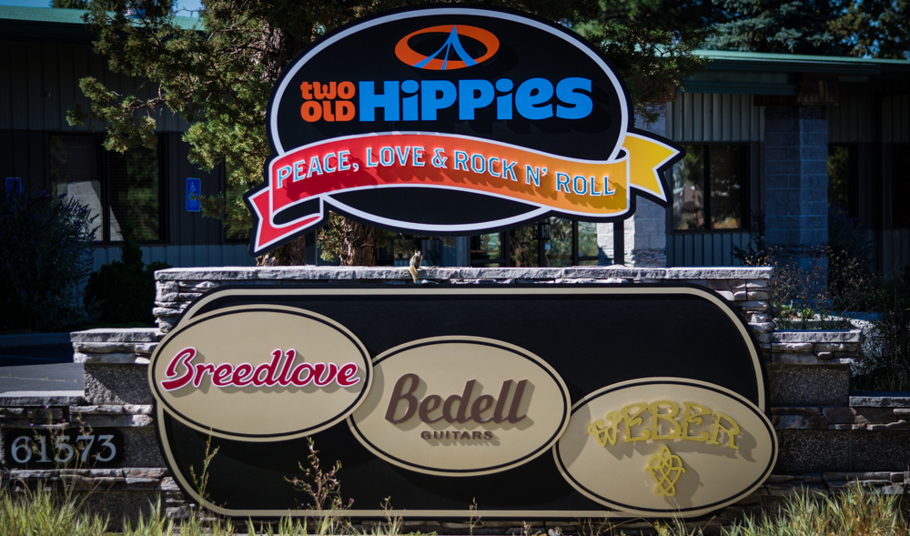 A few years ago, Two Old Hippies Guitars out of Colorado and Breedlove Guitars out of Bend joined forces and opened Two Old Hippies in Bend. While visiting a friend across the street from their company, we saw a little chipmunk running up and down their sign.