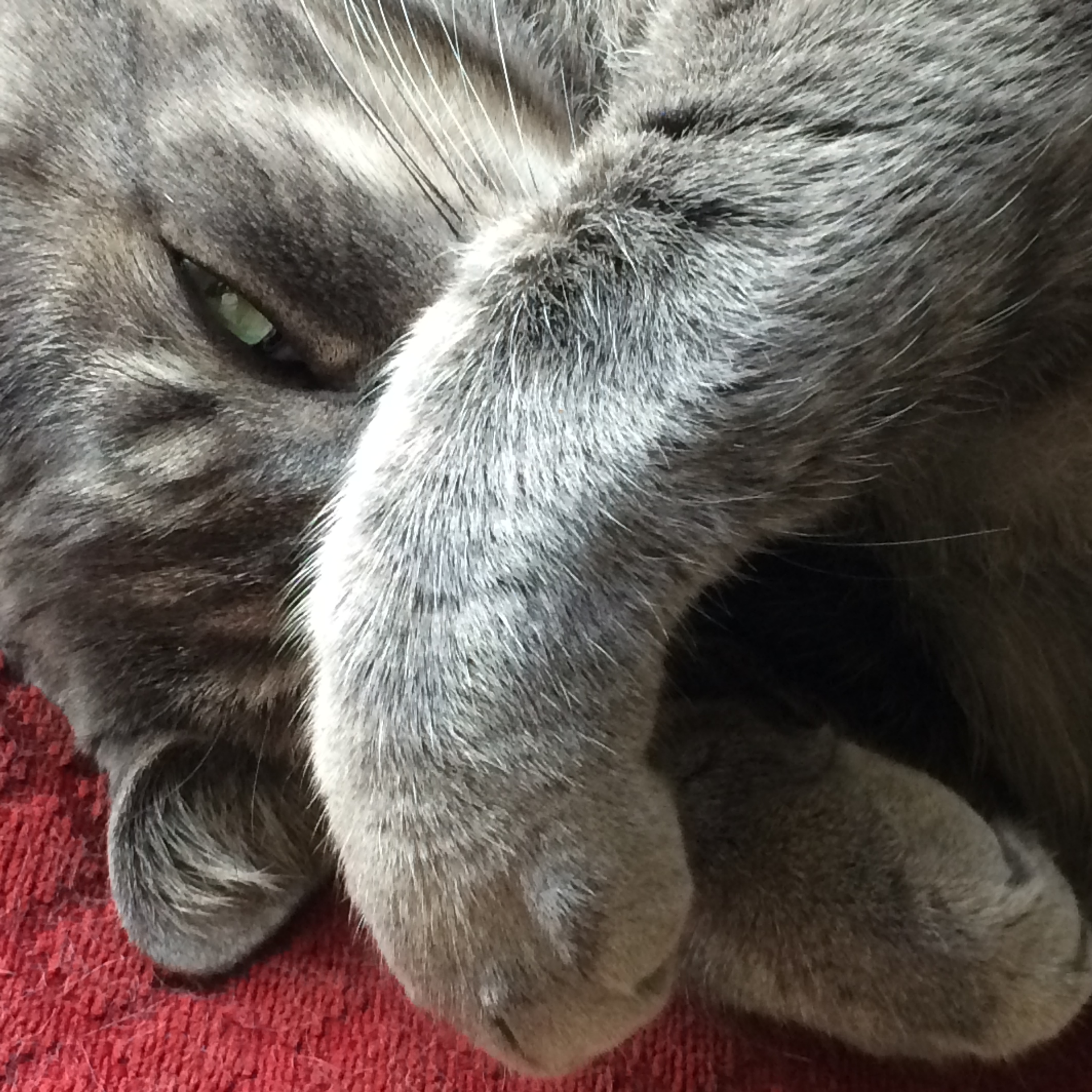 I think this is one of her favorite positions. She pretends like she’s sleeping, yet keeping an eye on everything going on around her.