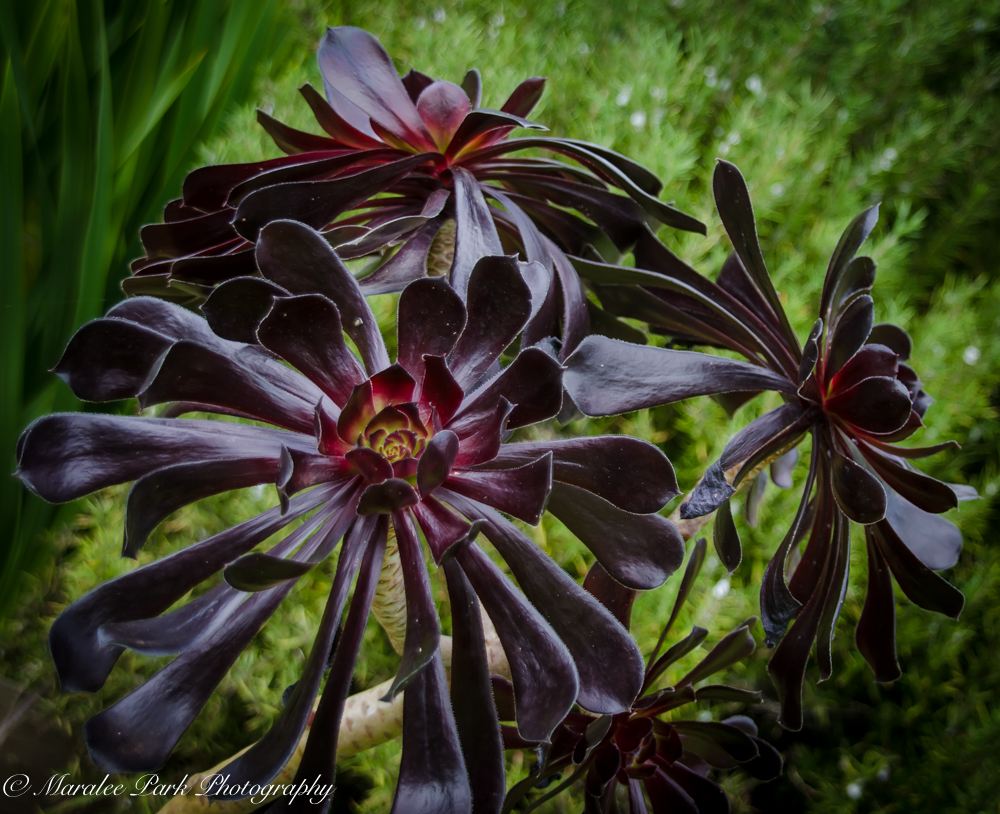 I saw this unusual succulent at the Alii Kula Lavender Farm on Maui when we were there in November.  It appeared almost black although it was actually a very deep purple.  They offered to give me a cutting of it but I didn’t think it would make it through agriculture customs at the airport.  They’re pretty strict about not letting any foreign plants in our out of the islands.  But I still have the photos of them.