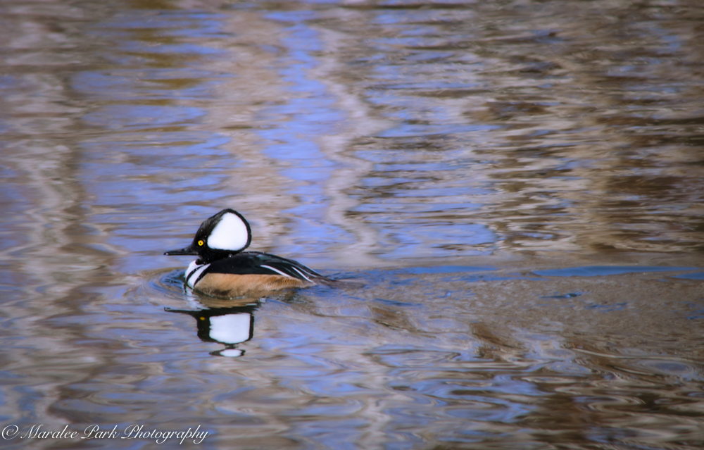 I saw this little bird while walking at Drake Park and had no idea what it was.  Google to the rescue!  I entered “duck-like bird with black and white head and yellow eyes” and lo and behold . . . there it was.  A Hooded Merganser.  Ducks-7598January 14, 2015This one is a male. I’ve lived here for 14 years and this was the first time I’ve seen this bird.