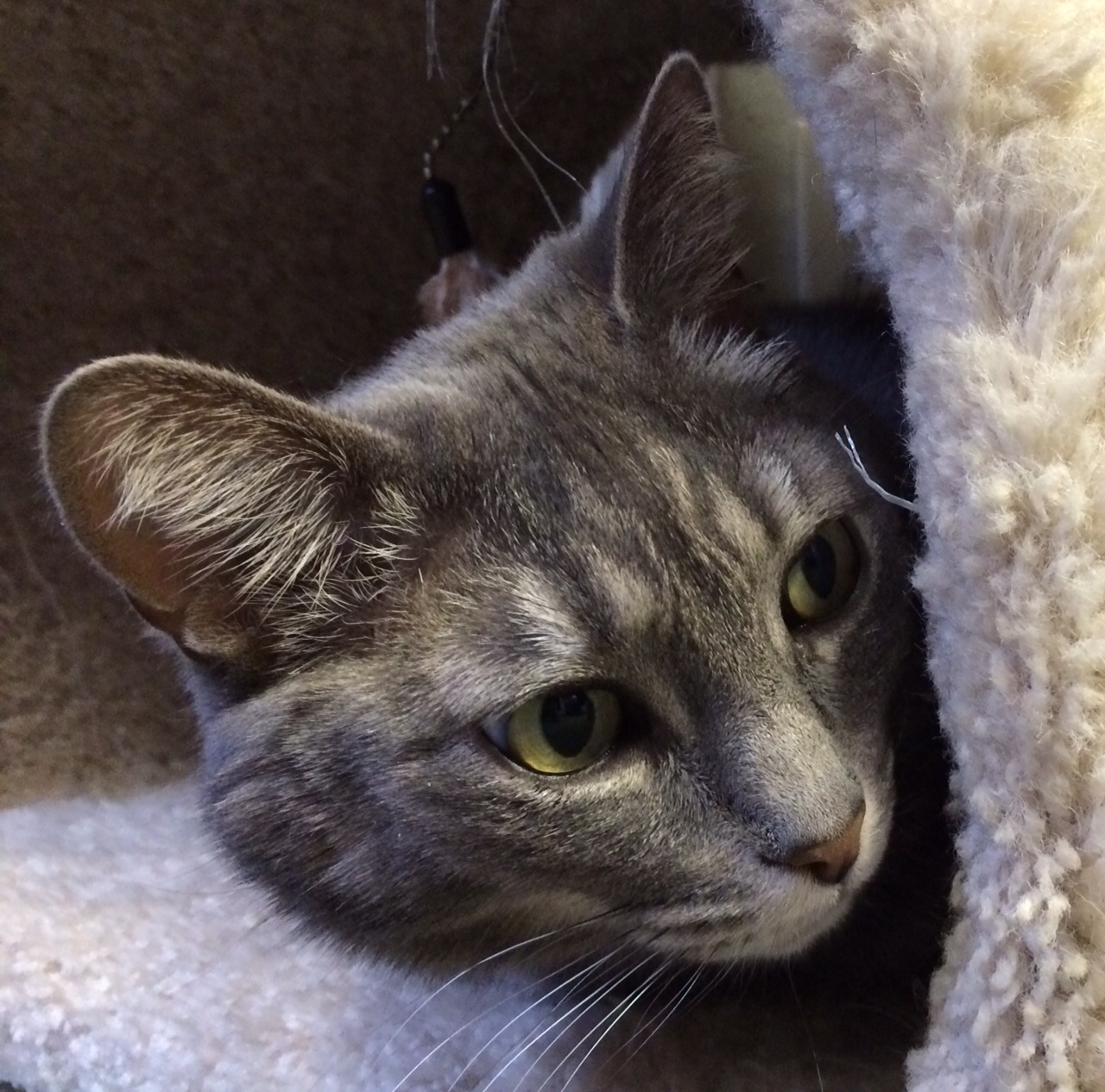 Posted on May 15, 2015May 14, 2015 by Tuxedo Sophisticated CatMiranda Friday Miranda is terrified of anyone between the ages of 2-15. She will hide in her little shelter if she hears anyone in that age group in the office. Here, the look in her eyes says it all. Maralee and Miranda Rate this:Share this: Click to share on X (Opens in new window) X Click to share on Facebook (Opens in new window) Facebook Click to email a link to a friend (Opens in new window) Email Click to share on LinkedIn (Opens in new window) LinkedIn Like Loading... Related