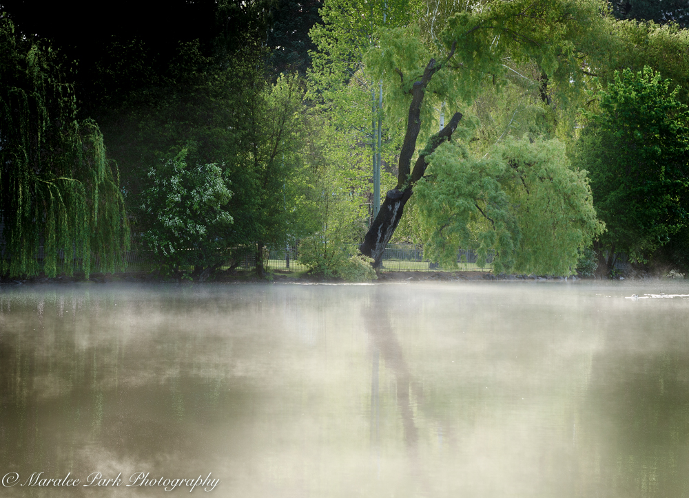 We live in an area where during the spring and summer the days are warm but the nights still get very cool. I was walking down at the river one morning last week when it was below freezing and there was steam coming off the water. It was someone ethereal but very pretty.