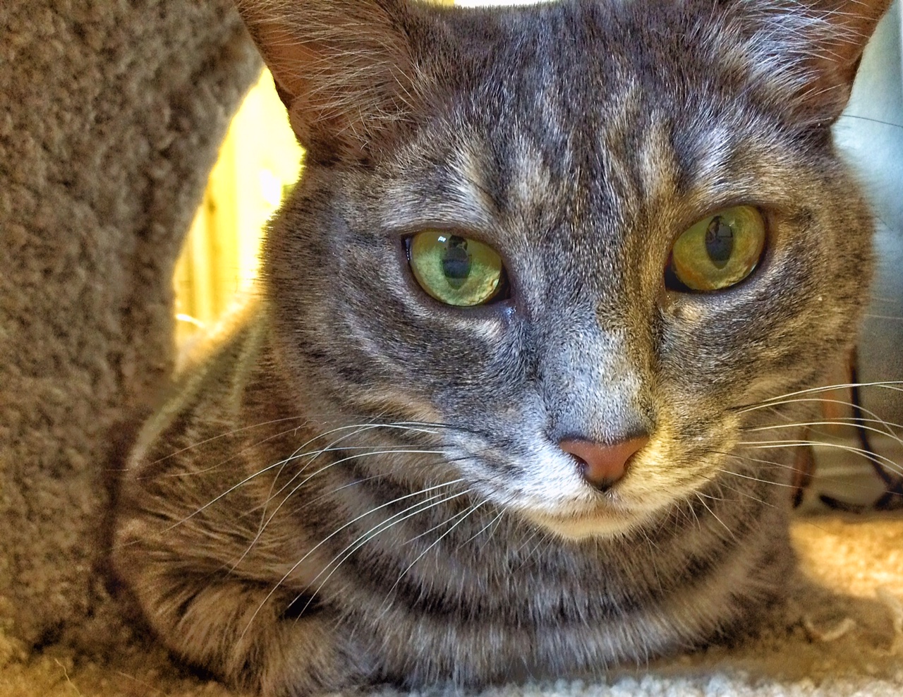 1. She is our office kitty. She stays at the office on the weekends but there is almost always someone here at various times during the weekend. If for some reason someone isn’t planning on being in the office, we make sure someone comes in to check on her and play with her for a bit. I’d love to take her home with me but I already have 4 cats.