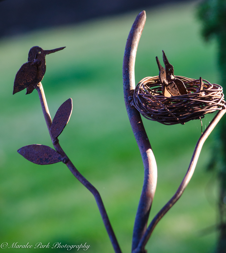 Hummingbird season is winding down and the cute little birds will be heading south for the winter very soon. I think some have already left. A friend gave us a wrought iron garden sculpture of a hummingbird and nest so I will have that to hold me through the winter until the little birds come back next spring.