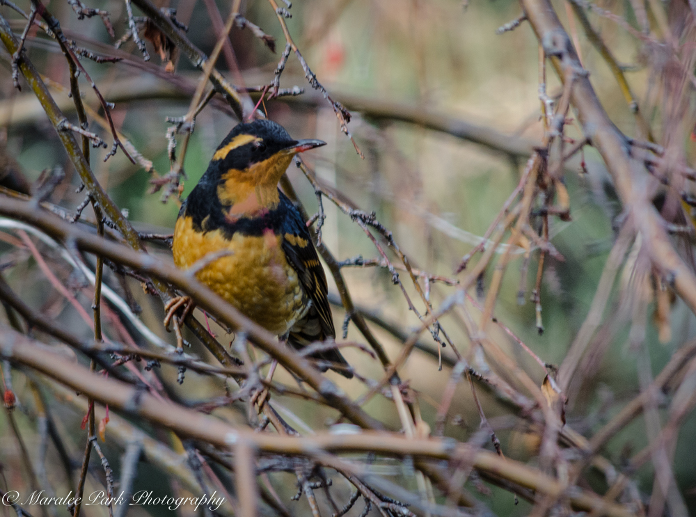 This bird was in my tree this week and I’m not sure what it is. I thought a robin but the markings are different from the robins I know. It was a very pretty and striking bird.