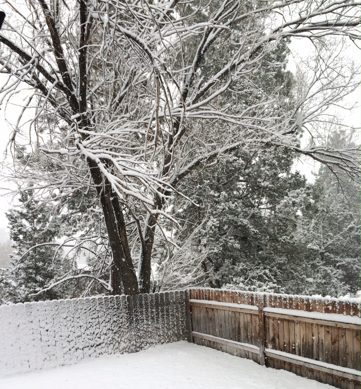 We are having our first big snowfall of the season today. It sure is pretty but I’m not looking forward to my drive home tonight. I just took this of the back of our office with my iPhone.