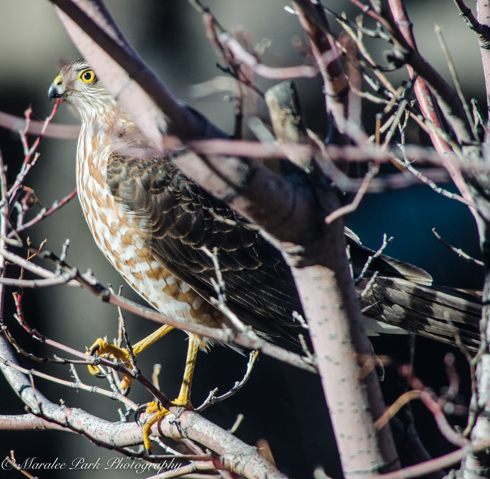 This bird landed in a tree outside my office window this week. It was the first time in 15 years that I’ve seen a bird this large land in that tree. It scared all the little sparrows away and stayed just long enough for me to grab my camera and get one shot off. I’m thinking it is a juvenile Cooper’s Hawk but I’m not sure. We looked through all of our bird books and that seemed to be the closest. Any other ideas?