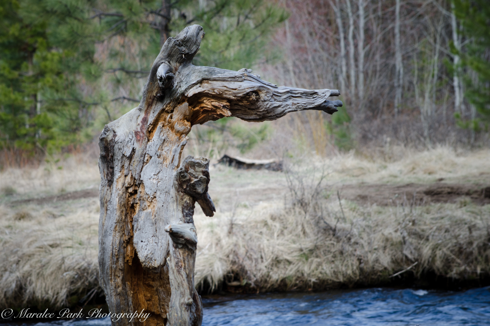 This past weekend I went for a walk along Tumalo Creek at Shevlin Park. While I didn’t encounter many birds, it sure was a beautiful walk along the river and among the trees. There are a lot of majestic ponderosa pines with a few burnt out skeletons. Along the creek there are plenty of old fallen trees. The last photos, to me, looks like a seahorse.