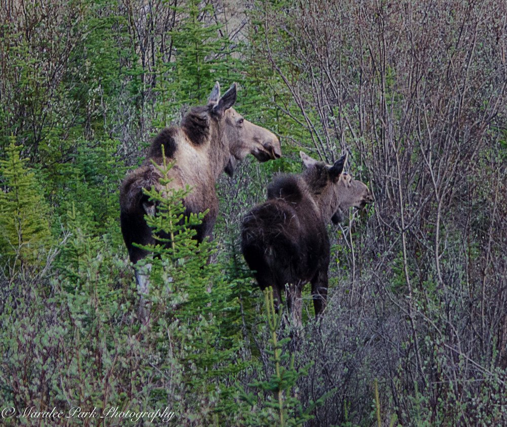 Our first evening there we took a drive along Spray Lake. We spotted these two moose in the bushes quite a distance from us. Even with using my 500mm lens I had to crop it quite a bit to really see the moose. While we were excited that we got to see our moose, we were still hoping to get a closer sighting. Did we or didn’t we? You’ll have to wait and see.