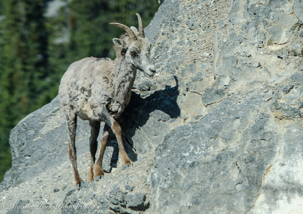 On our drive back from Jasper, we came across two groups of mountain sheep walking among the rocks by the road. Following is a short 8 second video of mountain sheep on the Columbia Icefields Parkway.