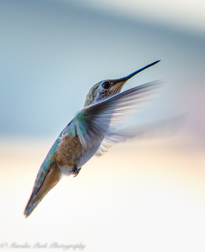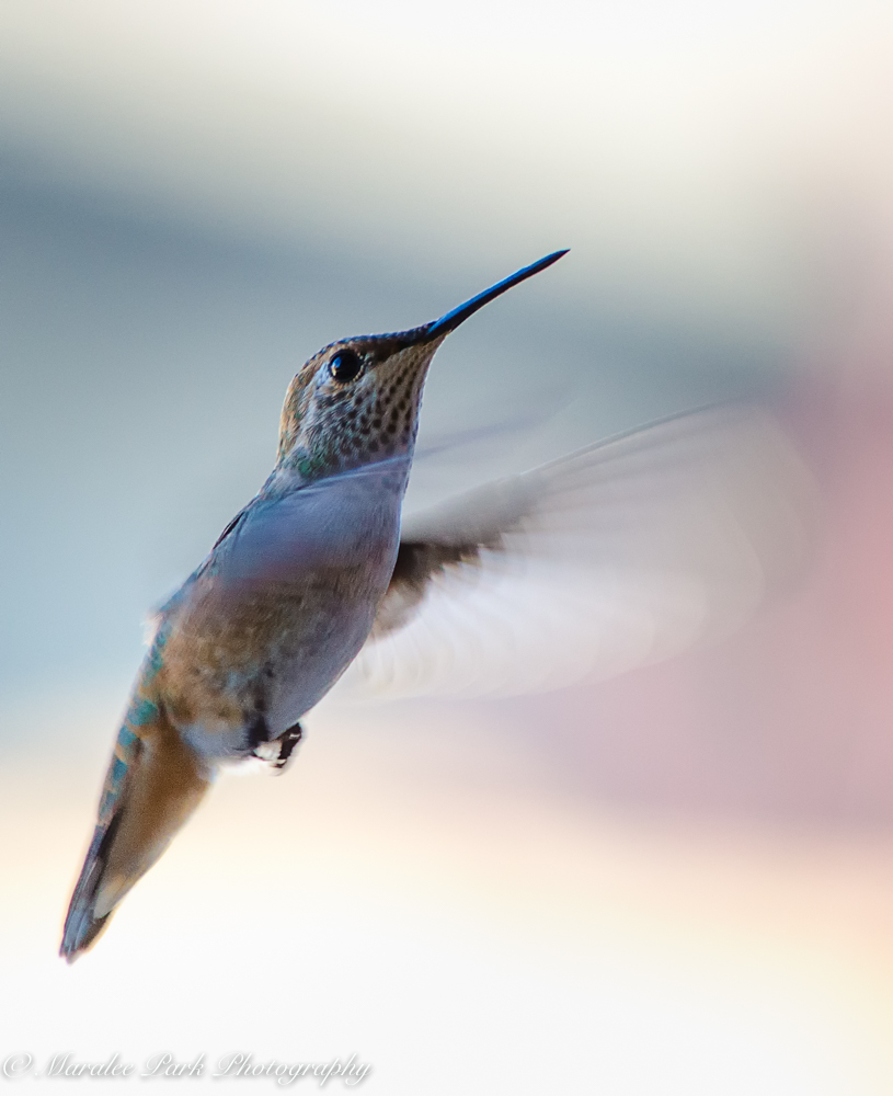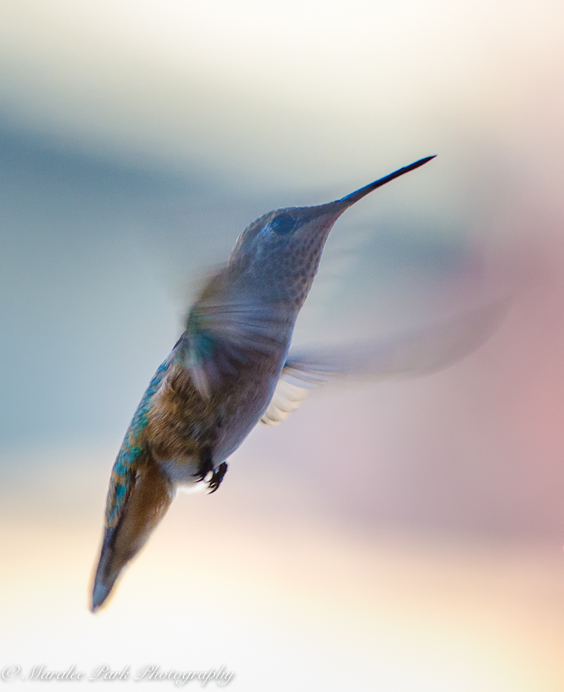 It is difficult to stop motion of a hummingbirds wings. I like the blur of the wings – it shows movement.