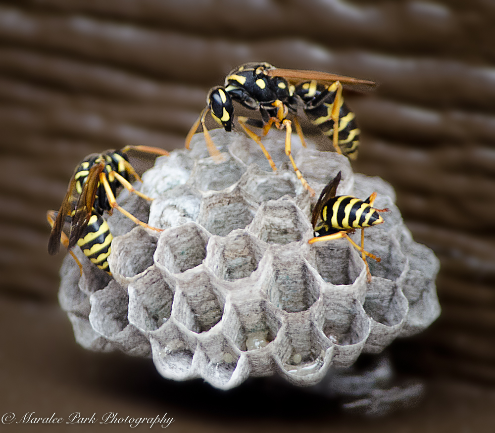 I was on our back patio watching the hummingbirds when I noticed there were quite a few hornets/wasps (?) flying around. I looked under the eaves of the house and found this nest. It’s not very large yet but they’re working on it. My next task will be to get rid of it without being stung.